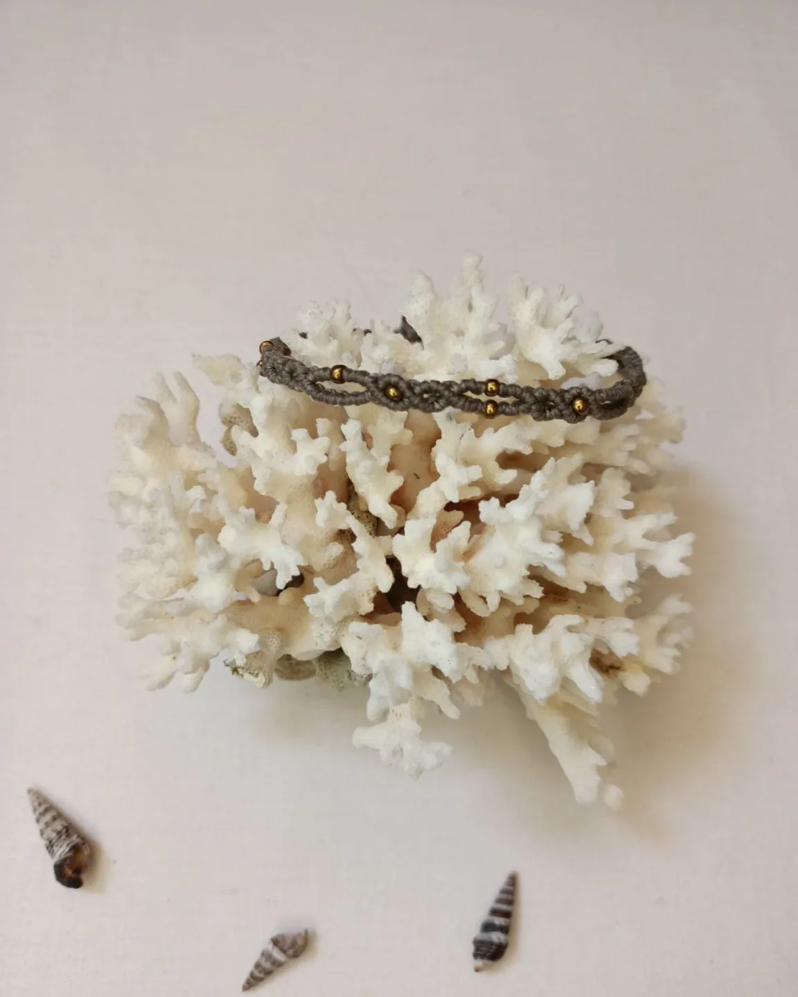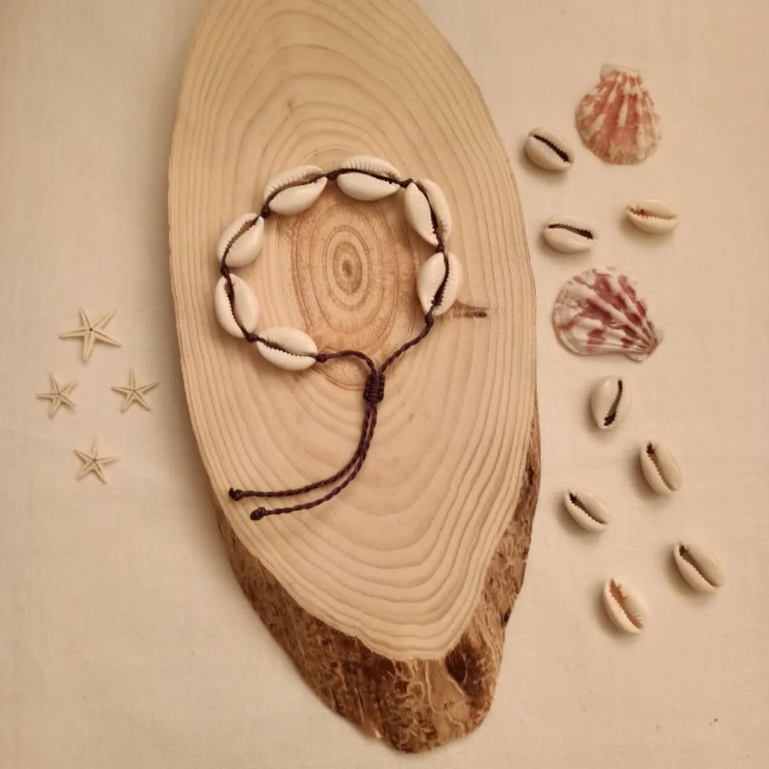 دستبند مکرومه صدف جنس نخ موم زده