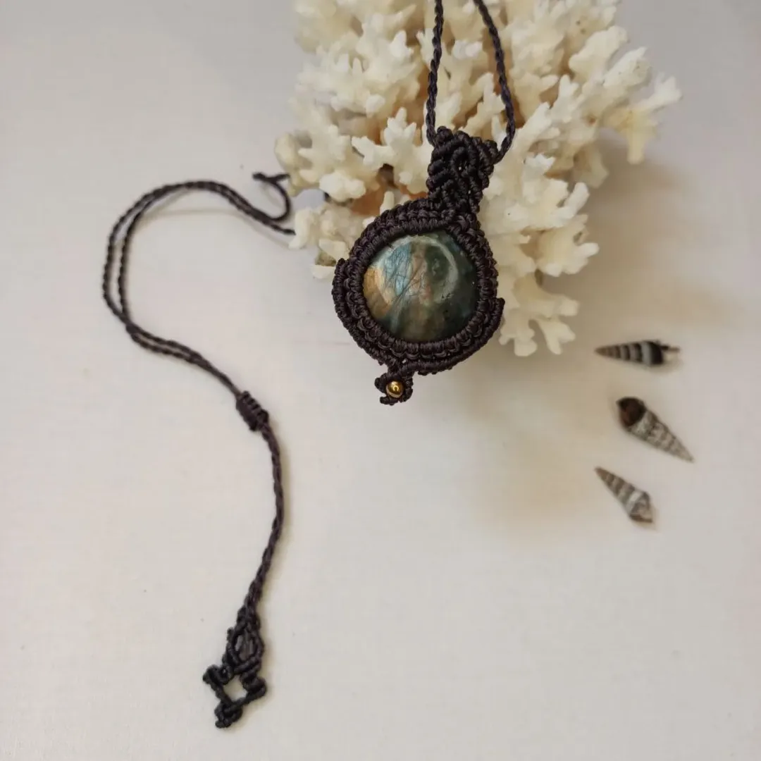 گردنبند مکرومه مدل سنگ لابرادوریت طبیعی جنس نخ موم زده