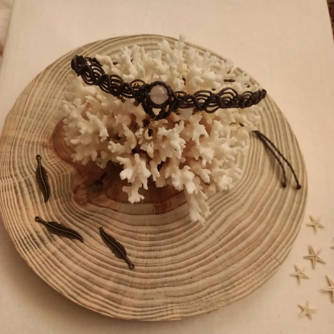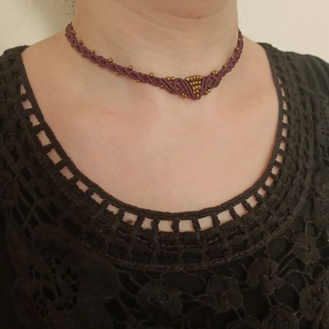 گردنبند مکرومه مدل الیاوین جنس نخ موم زده
