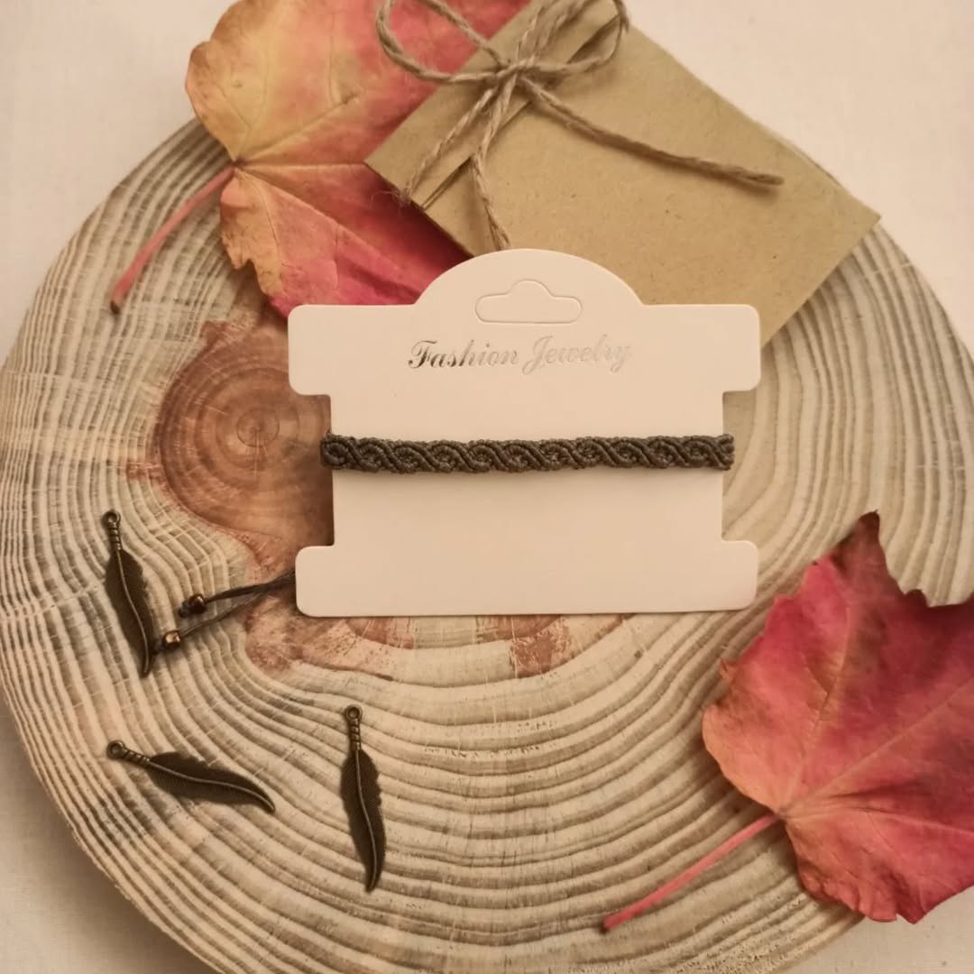 دستبند مکرومه مدل برگ جنس نخ موم زده